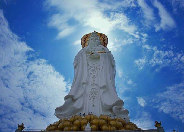 后来我们来到三亚南山寺游览。只见游人熙熙攘攘,川流不息;庙宇,亭台楼阁鳞次栉比,富丽堂皇。我们首先拜谒南海观音菩萨,手中拿着清香,怀着虔诚的心,一直朝着南海观音高大的塑像走去。