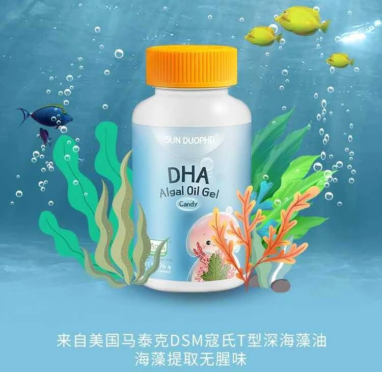1. SUN DUOPHD·朵博士125DHA原料来自帝斯曼马泰克寇氏T型深海藻油,纯天然植物提取,确保DHA不被破坏,富含藻油DHA、叶黄素、β-胡萝卜素等珍贵营养素。另外,还精选卡拉胶果胶胶皮,口感淡淡的甜橙味,一吃就爆浆,孩子都爱吃;