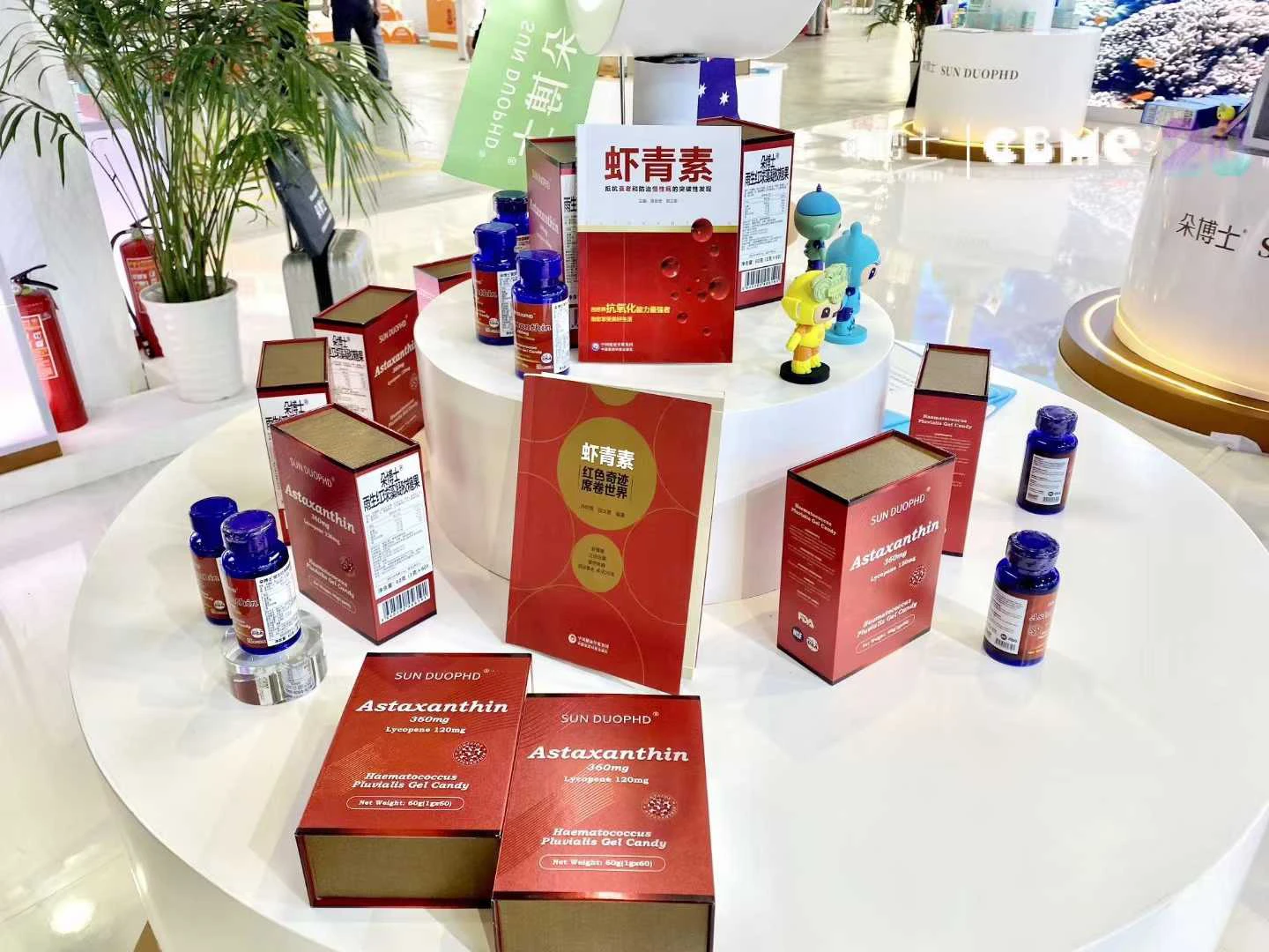 朵博士展示了旗下的主打产品,其中有几款产品格外受到关注。这几款产品分别是雨生红球藻虾青素、免能燕窝酸酵母β-葡聚糖、女王三重深海鱼胶原蛋白肽、125DHA以及畅敏舒益生菌。