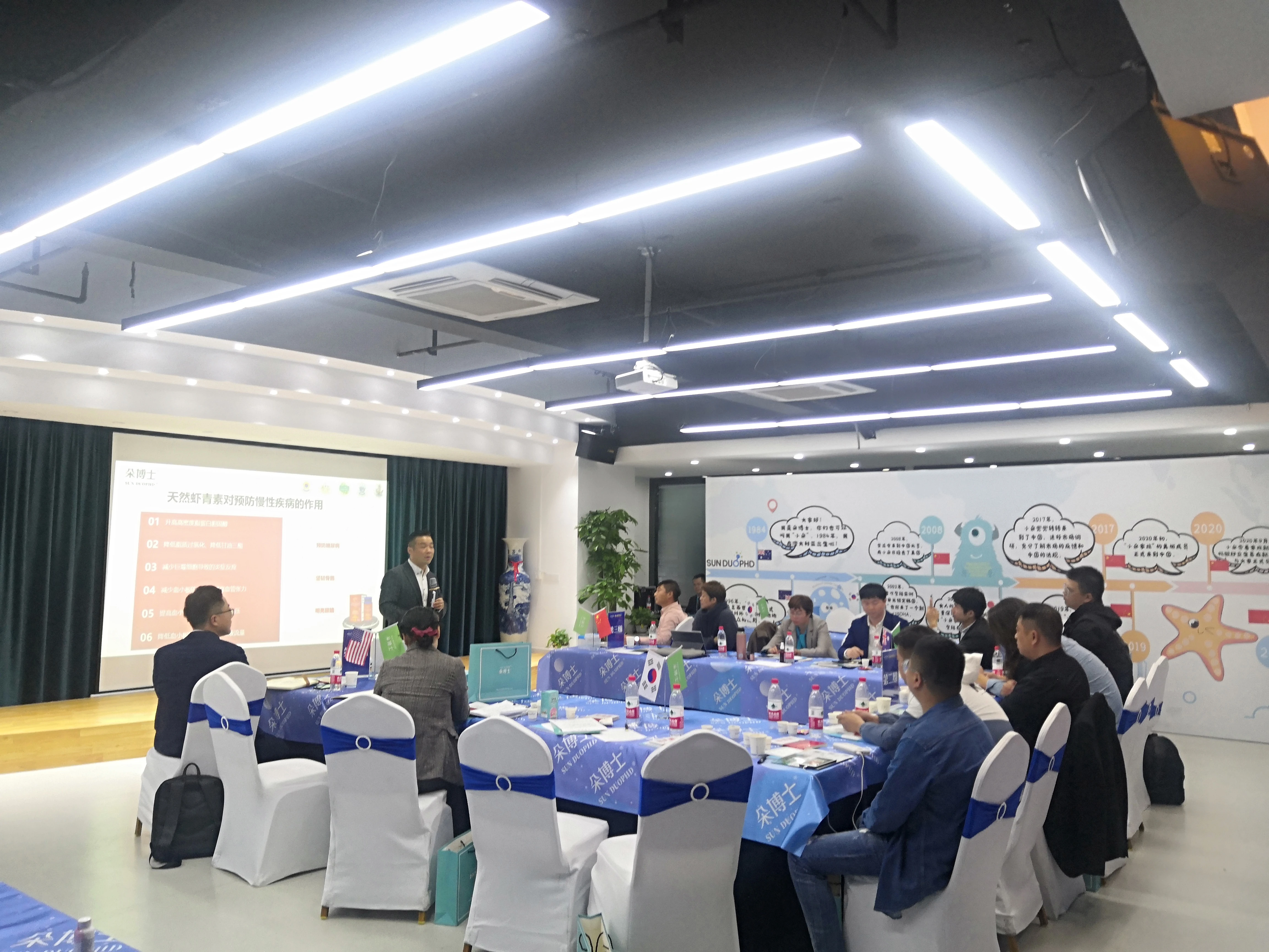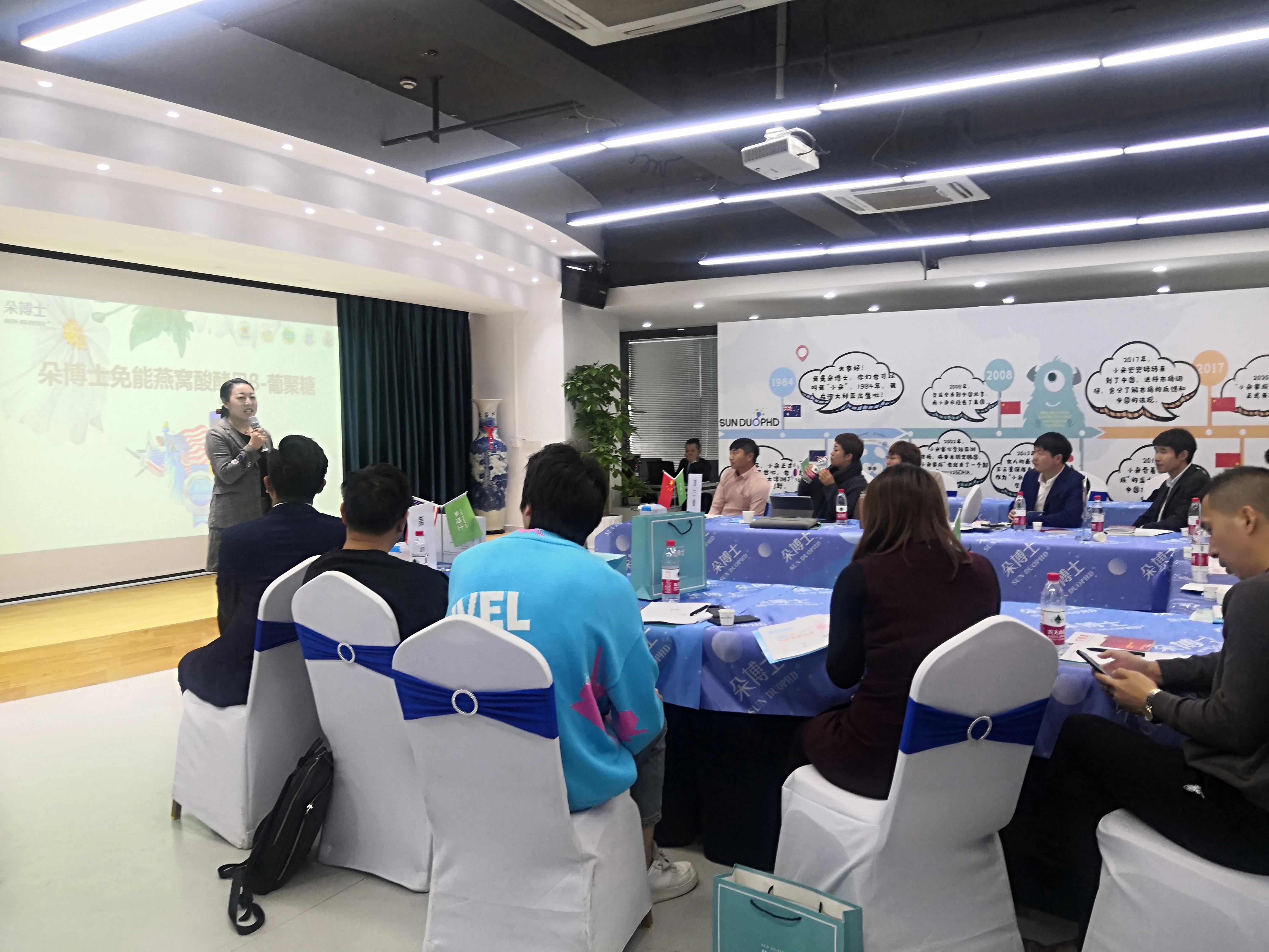 随着主持人热场结束,为期两天的会议正式拉开帷幕。首先由营养学院的众多资深培训导师给大家带来朵博士旗下主打产品的知识培训以及模块化思维演练。朵博士是一个注重产品品质的品牌,深信留住客户的一个关键要素就是好的产品。在讲解产品优势的同时,还提到朵博士的产品会与时俱进,跟进社会的发展,对产品做出升级,进行更新迭代,给消费者提供最优质的产品。前来的经销商对朵博士的产品有了全面的认识,对朵博士多了一层信任。