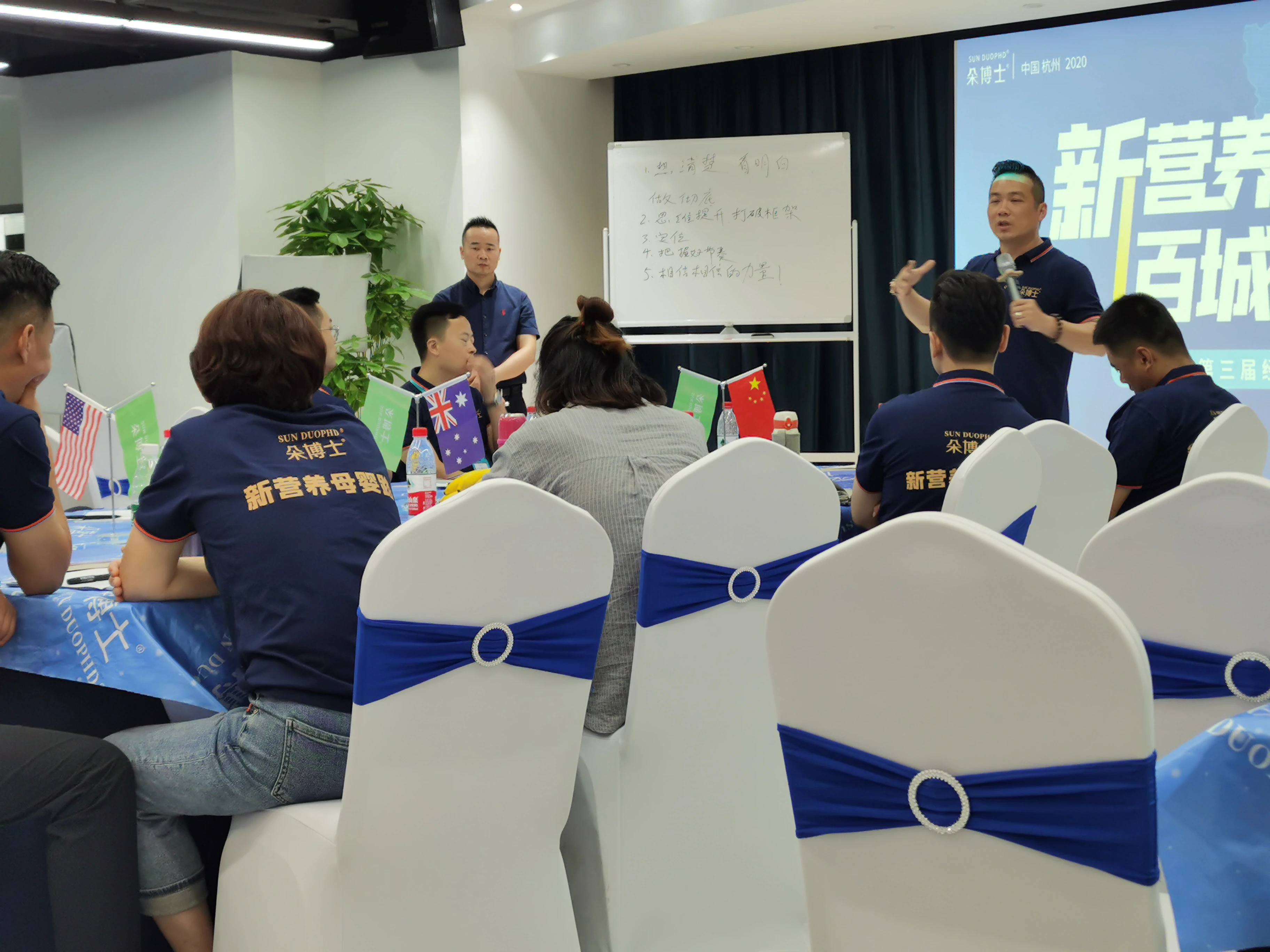 随着主持人云尚老师宣布会议正式开始,这次会议也正式拉开帷幕。首先,由DDA大学商学院的院长和营养学院的导师给大家进行了朵博士产品的知识培训和模块化思维的演练。让前来的经销商代表对对朵博士的产品有更深刻的了解,更好的投入到市场工作中。随后,穆之总回顾总结了朵博士2020年上半年的工作亮眼之处及战略发展思想,还以积极姿态对2020年朵博士百城千店工程进行畅想计划。