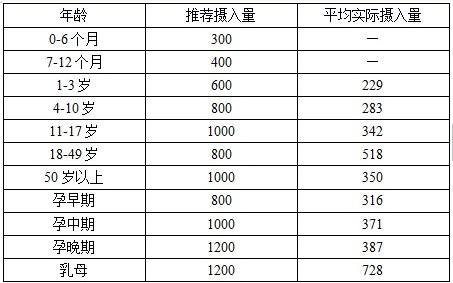 根据中国营养学会《中国居民膳食营养素参考摄入量》公布的数据,婴儿每天的钙摄入量应为300mg左右,1至3岁增加到每天600mg,11~17岁达到每天1000mg,成年人是800mg。